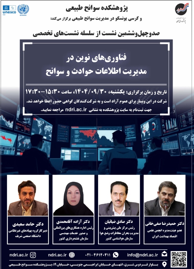 نشست فن آوری نوین در مدیریت اطلاعات حوادث وسوانح ۳۰ آذر ۱۴۰۴ | ۱۲:۰۴ کد : ۵۷۱۴۹ اطلاعیه ارسال به دیگران نام شما ایمیل شما ایمیل دریافتکننده ارسال انصراف تعداد بازدید:۸۰ دعوتنامه نشست فن آوری نوین در مدیریت اطلاعات حوادث وسوانح